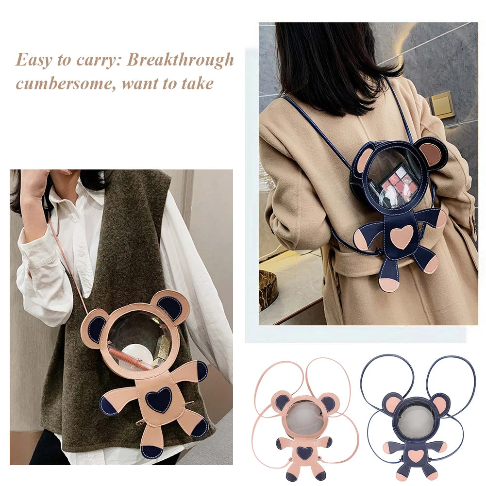This trendy bear backpack is perfect for women, teenage students, and college girls. Made of durable PVC, it features a spacious design ideal for school or daily use.