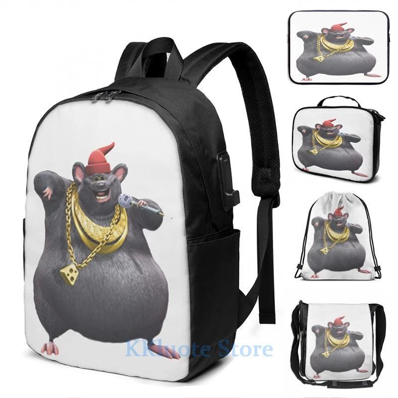 Biggie Cheese USB Charge Backpack School Travel Laptop Bag