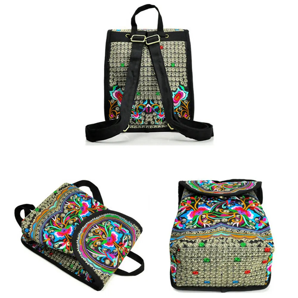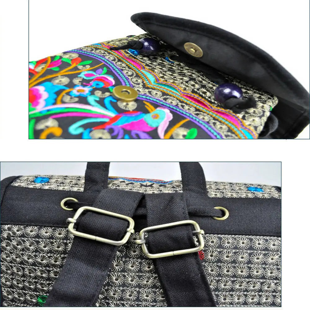 Boho Embroider Canvas Backpack Bag Travel Shoulder Bag