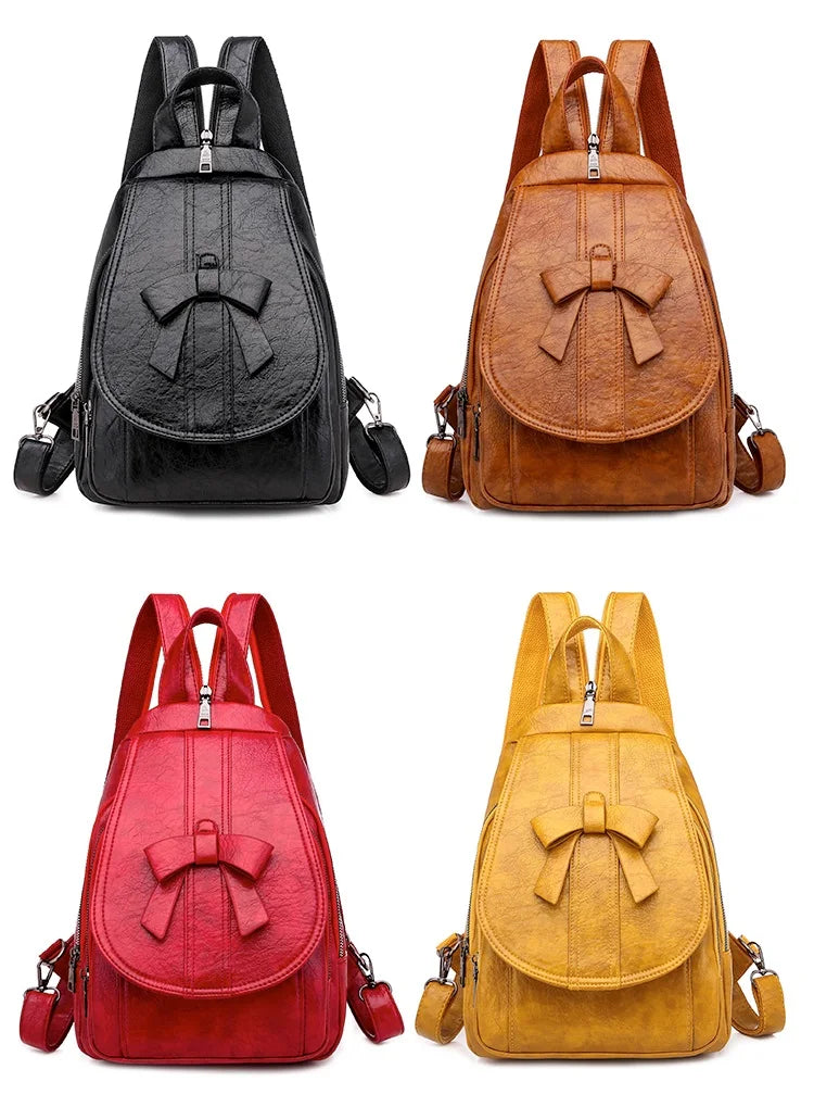 Bow Women Backpack Pu Leather Schoolbags Backpacks Multifunction