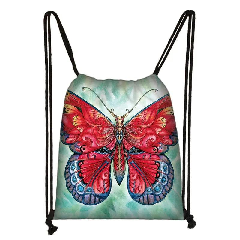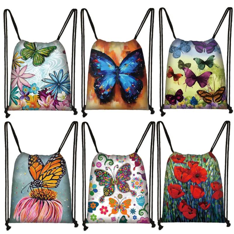 Butterfly Floral Backpack Women Storage Bags for Travel Ladies Drawstring Bags