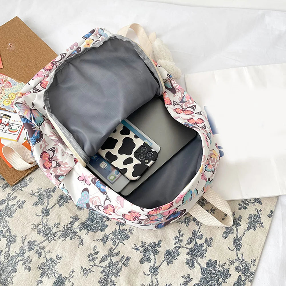 Butterfly Print Schoolbag Women Backpack Casual Oxford College Lady Laptop Bag