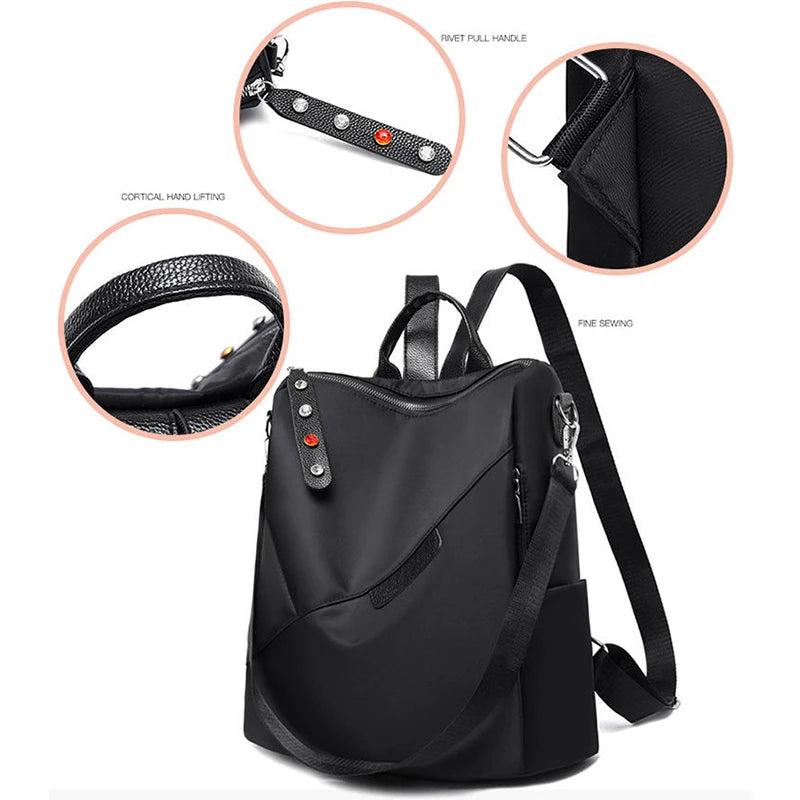 Stay stylish and organized with this multifunctional lady backpack that is perfect for daily use. Made of high-quality Oxford material, it is waterproof and anti-theft, ensuring your belongings are safe. Ideal for business, school, travel, and more.