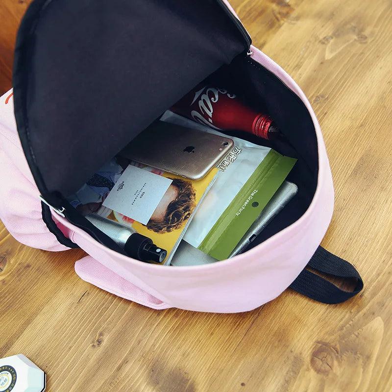 This canvas backpack features cute rabbit ears, perfect for casual students in collenge style. Ideal for school or everyday use.
