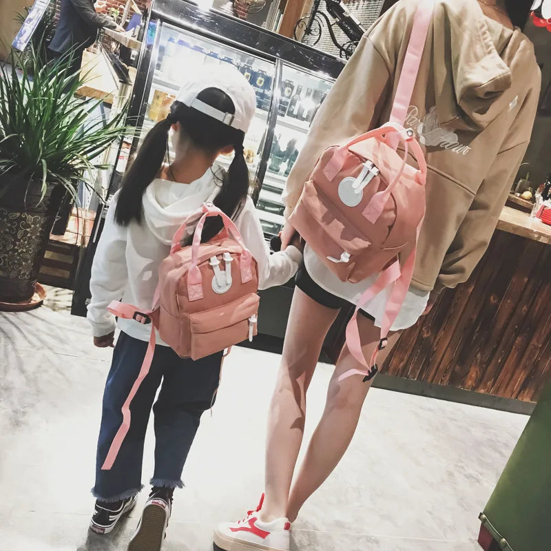 This canvas backpack is perfect for adolescent girls, featuring a small size ideal for school or daily use. It can also be used as a parent-child backpack for a stylish matching look.
