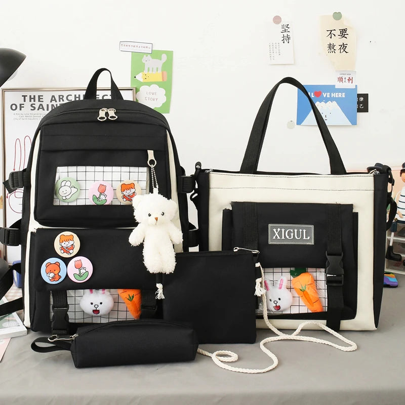 This 4-piece set includes a stylish backpack, bags, and schoolbag for the fashion-forward teen. Perfect for high school students and travelers.