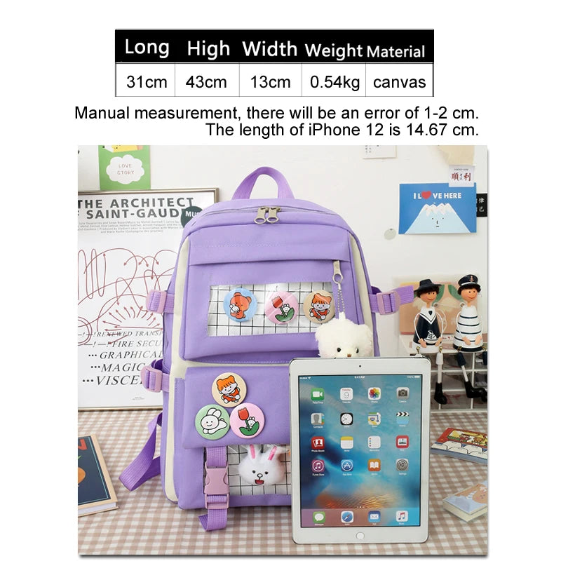 Canvas Backpack Set for Teenage Girl High School Travel Women Student