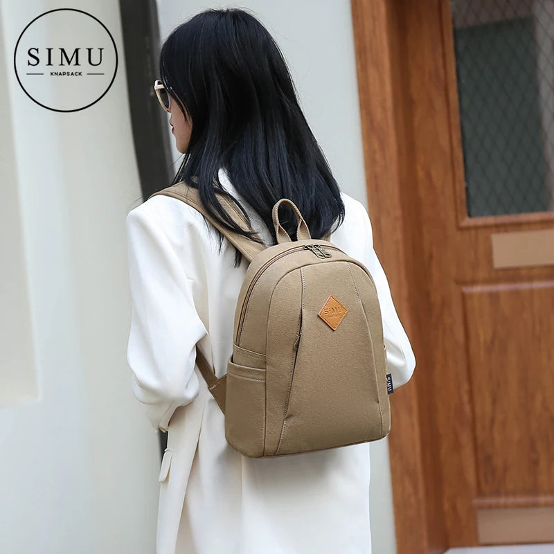 A small and stylish canvas backpack suitable for teenage girls. It features a solid color design and is perfect for casual outings and travel.