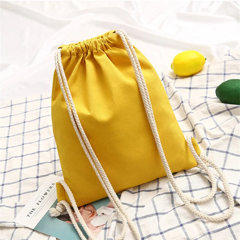 Canvas Drawstring Backpack School Gym Bag Casual Knapsack Women Bags