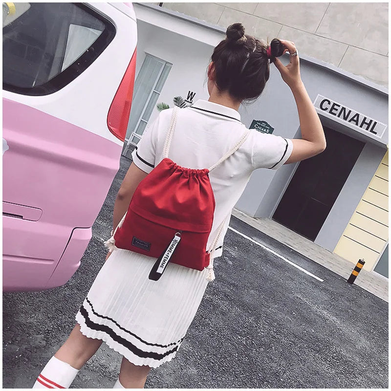Canvas Drawstring Bag Women Small Backpacks For Girls Fabric Bagpack