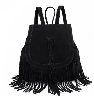 This female classic backpack features an ethnic style with tassel details, made of durable canvas material. Ideal for school and daily use.