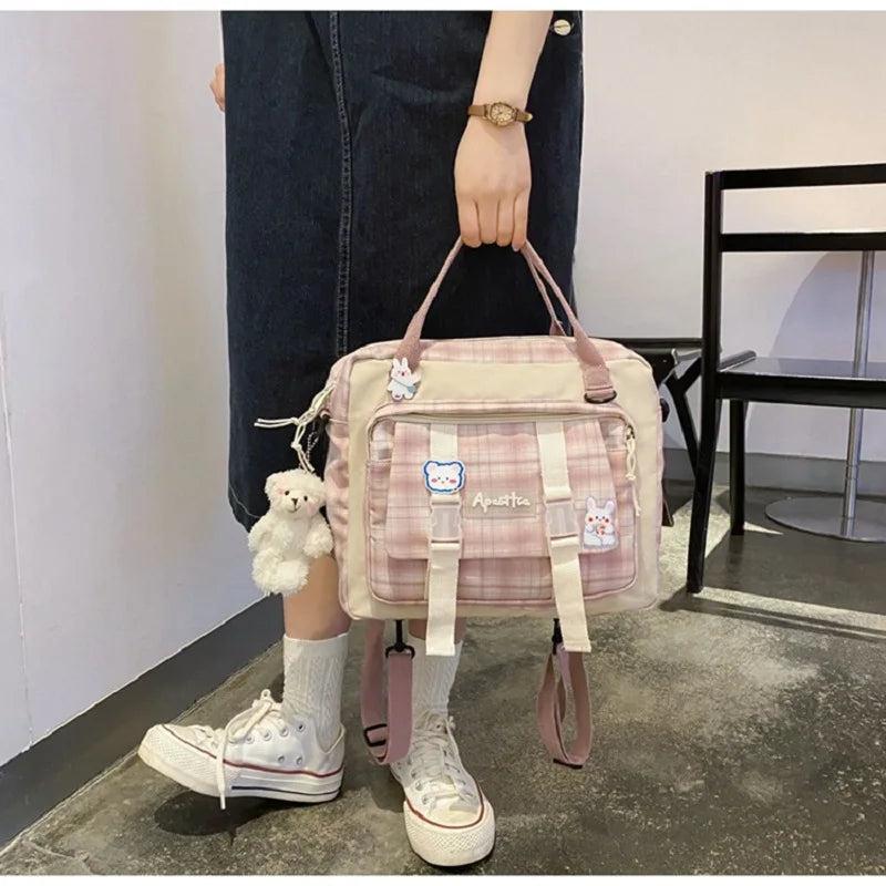 Description:This women's backpack is made of durable canvas material and features a stylish badge design. It is perfect for carrying your essentials in a small and compact size, making it ideal for school or daily use.Features: Made of durable canvas material Stylish badge design Perfect for school or daily use...