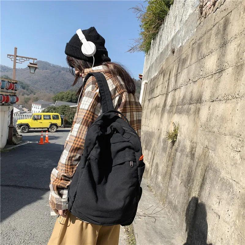 Canvas Rucksack Large Capacity School Bag Unisex Book Bag