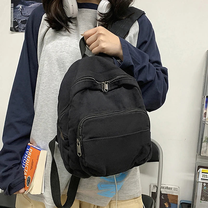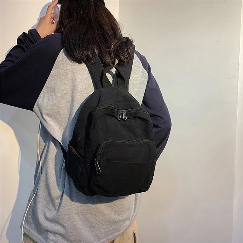 This vintage canvas mini backpack is perfect for women on-the-go. It's ideal for school, outings, and everyday use.