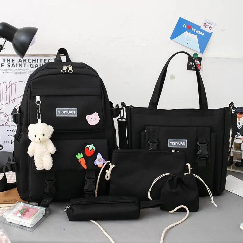Canvas Women's Backpacks 5 pcs Set Big Capacity Students Bags