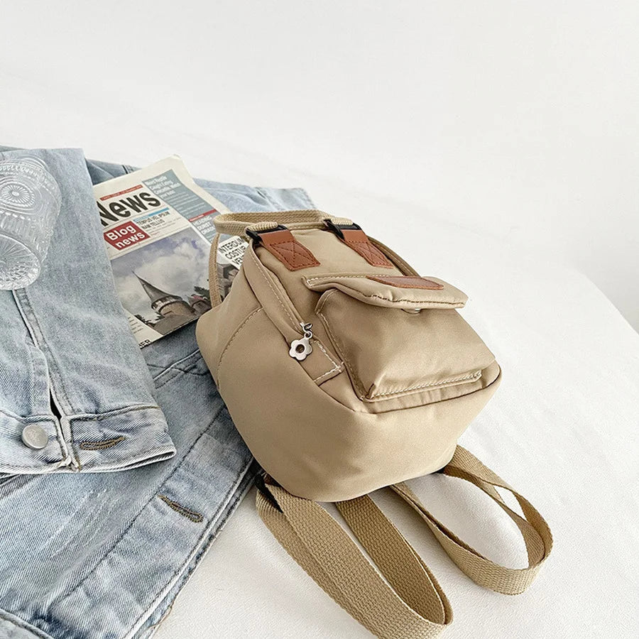 This retro-inspired mini backpack is perfect for women and teen girls. Made of durable canvas, it's ideal for casual outings or school. With a stylish design and compact size, it's a versatile accessory.