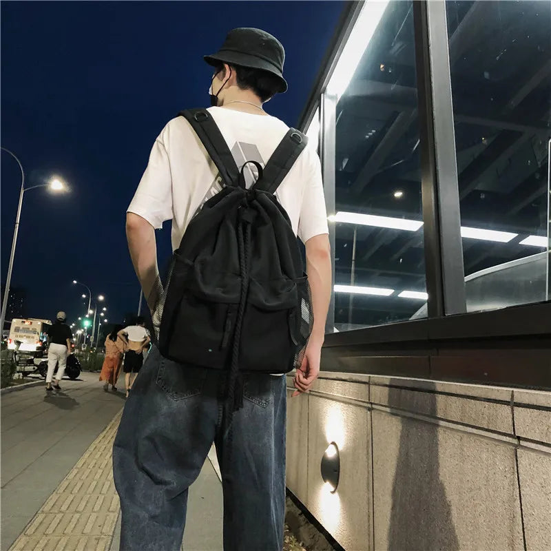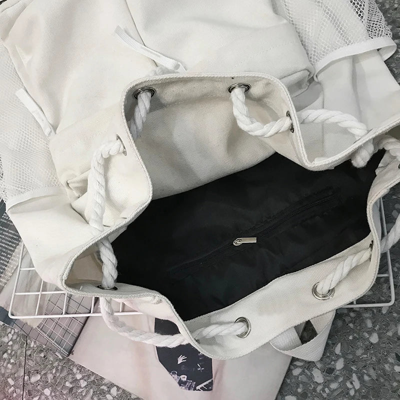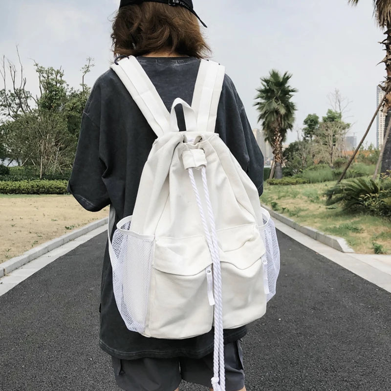Casual Canvas Women Backpack Schoolbag Drawstring Backpacks Large Capacity