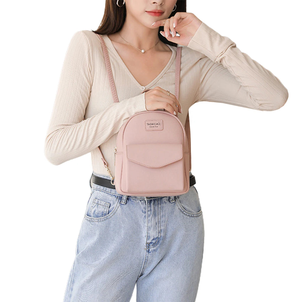 Casual Mini Backpack for Women Dual Use PU Leather Bags Waterproof Shoulder Bag