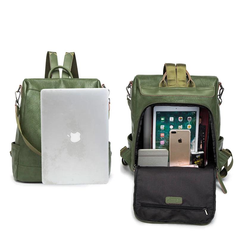 Casual Multifunction Women Leather Backpack Female Shoulder Bag