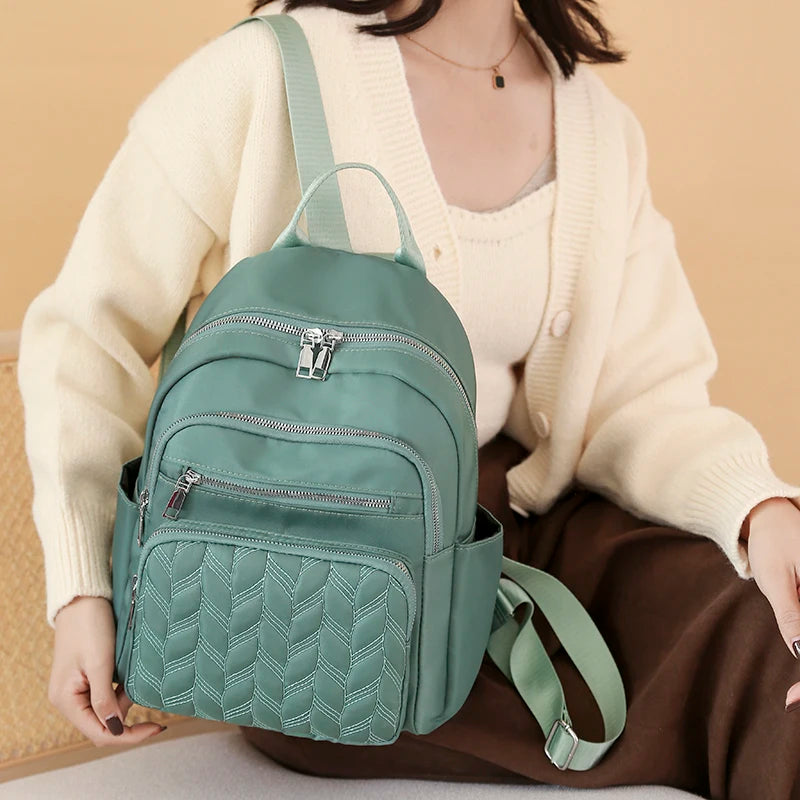 This stylish and functional backpack is perfect for women on the go. Made of waterproof Oxford fabric, it's ideal for school, travel, or everyday use. It features multiple pockets to keep your belongings organized.