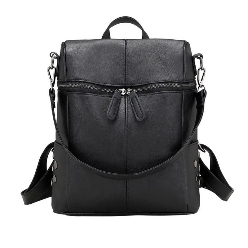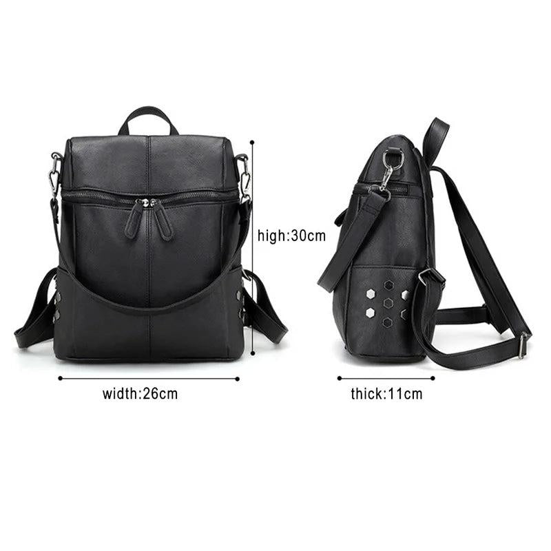 This vintage style backpack is made of high-quality PU leather, perfect for school or travel. It features solid color design and adjustable shoulder straps.