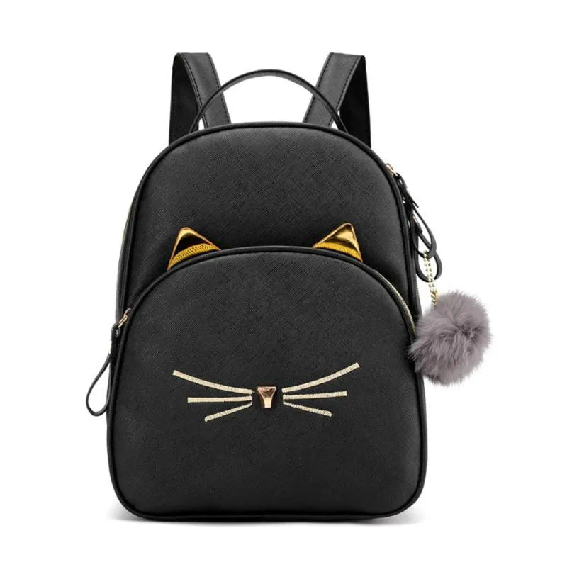 Chic and stylish rucksack made of PU leather. Perfect for teenagers and women. Features a cute cartoon cat design.