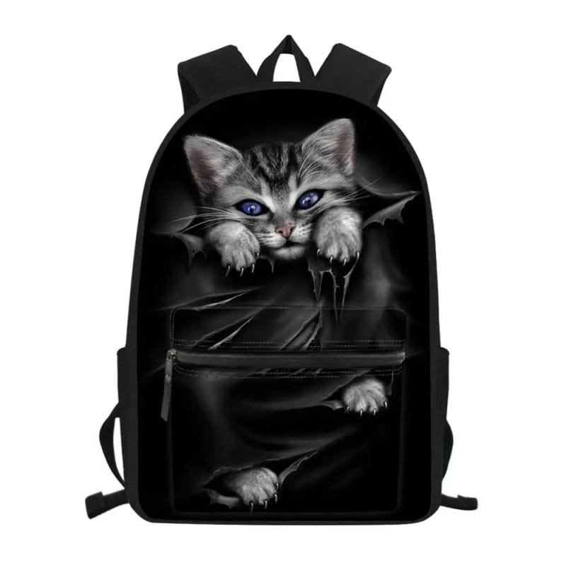 Description:This stylish backpack features a cat print design with a gothic moon accent. Perfect for teenagers, girls, and women, it is ideal for school, travel, or everyday use. The middle school bag is both functional and fashionable.Features: Cat print design with gothic moon accent Ideal for teenagers, girls, and women...