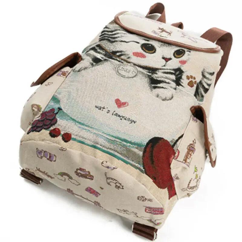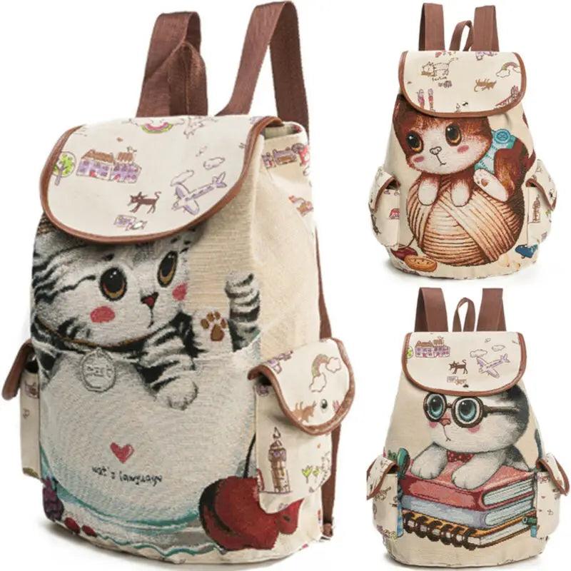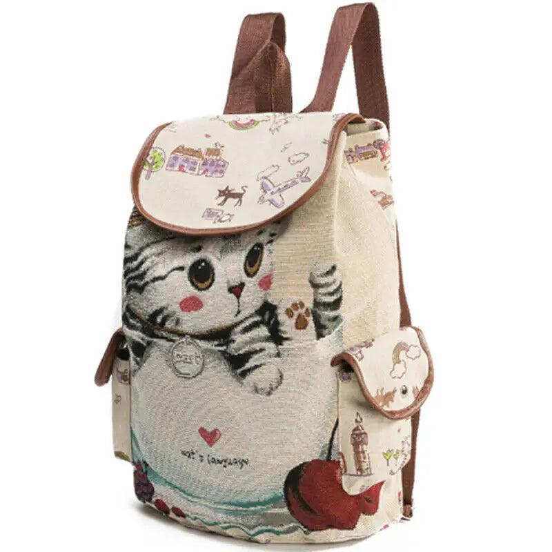 Stay stylish with this casual canvas school backpack featuring a lovely cat print. Perfect for everyday use.
