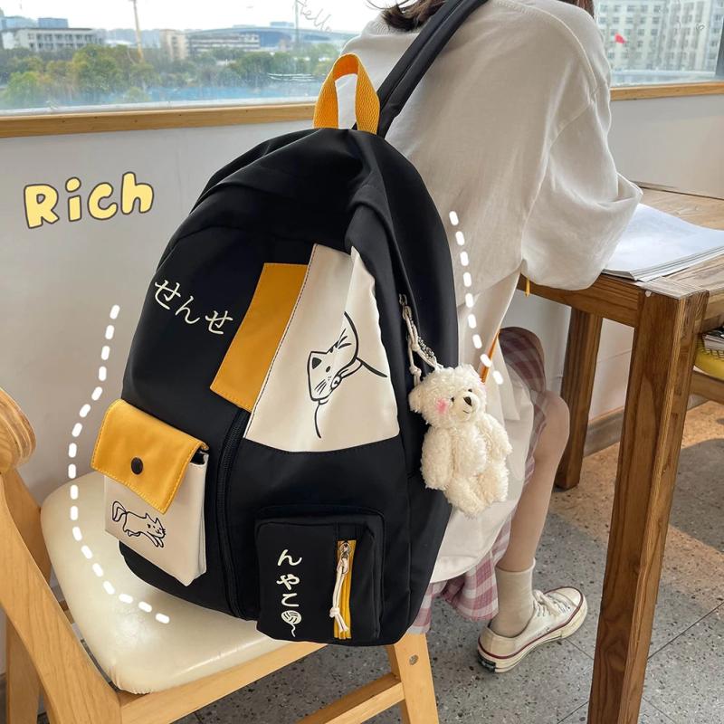 Description:This preppy style backpack features cartoon cat printing and a contrast design. It has a large capacity and is waterproof, making it perfect for school or travel.Features: Preppy style backpack with cat printing Contrast design for a stylish look Large capacity to hold all your essentials Waterproof material for durability...