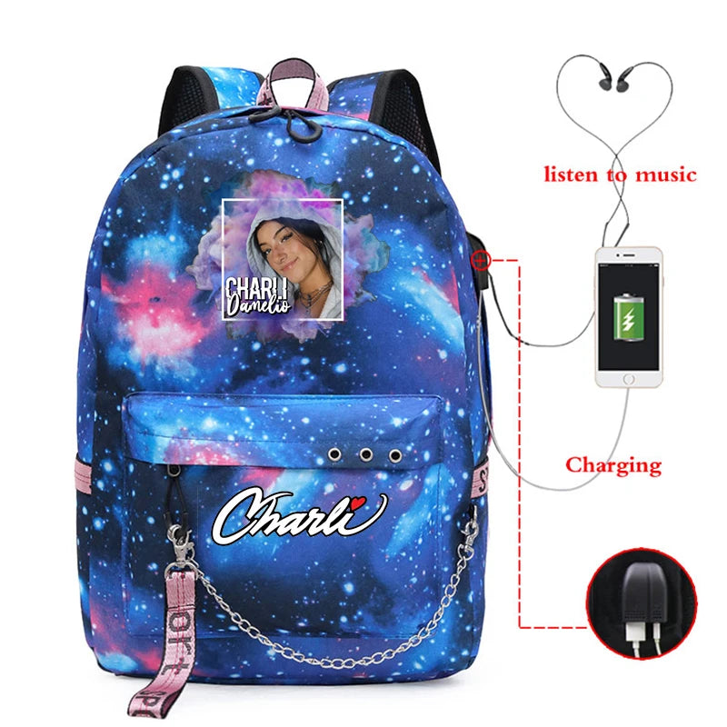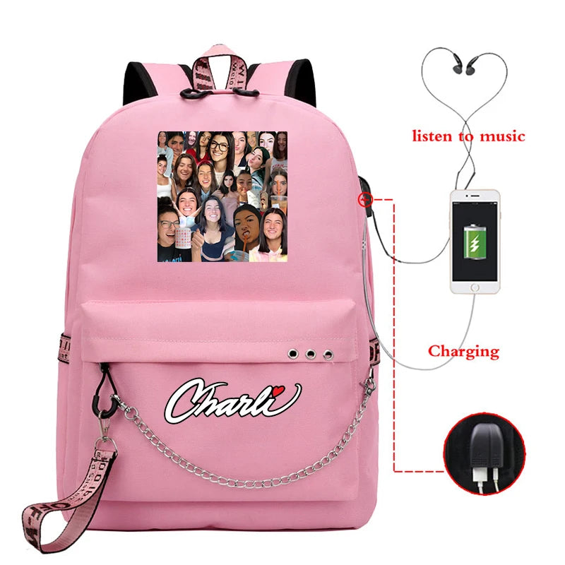 Charli D'Amelio Backpack USB Charging School Bag for Girls Women