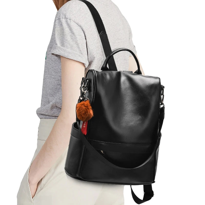 Stay fashionable and secure with this stylish backpack purse made of PU leather. It features anti-theft design and comes with bobble pendants for added flair.