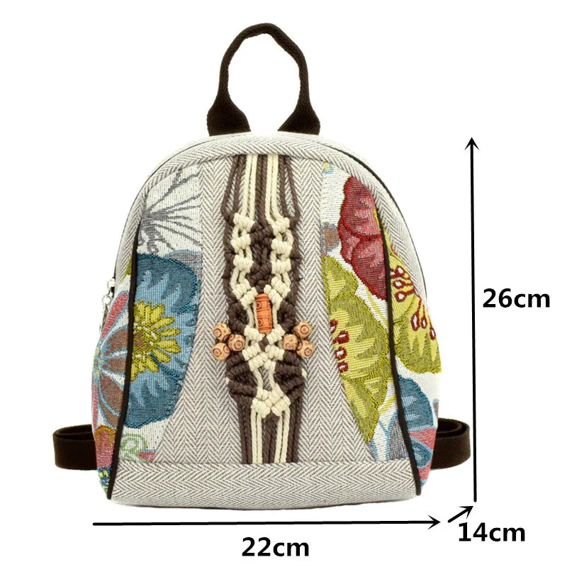 Chinese National Women Backpack Vintage Printed Hand-woven Shoulder Bag