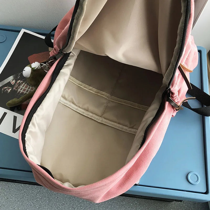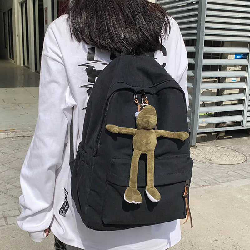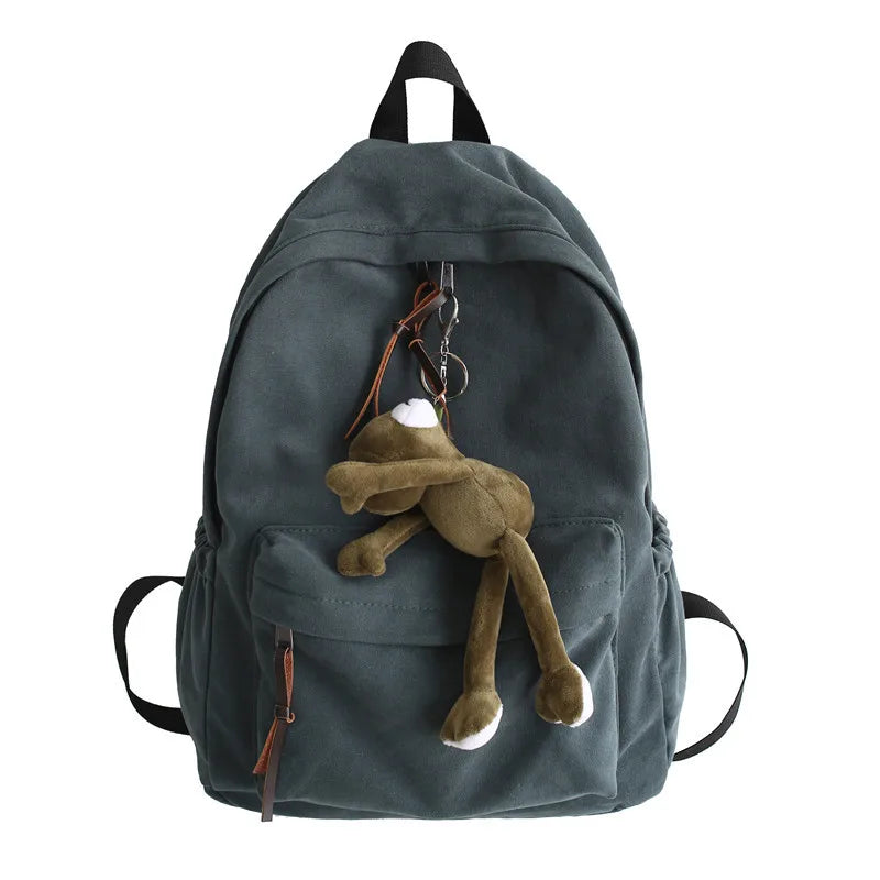 This solid backpack is a casual and stylish choice for teenagers. It features a pendant shoulder strap for added charm.