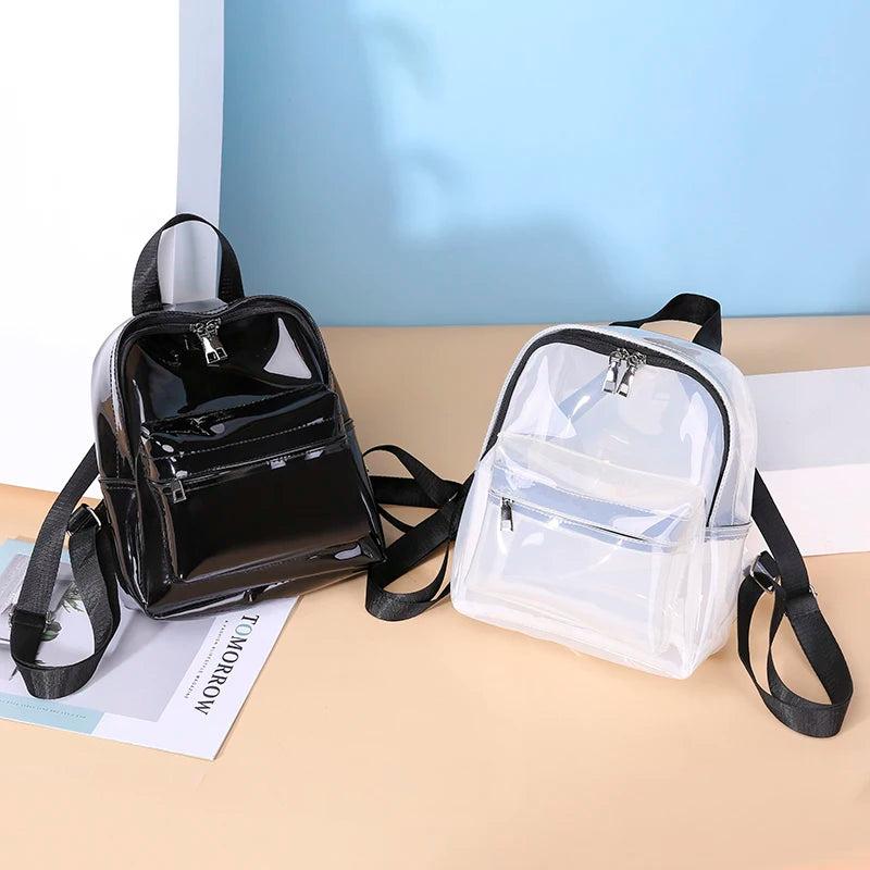 Stay stylish and organized with this transparent backpack made for women. Perfect for college students, it features a waterproof design and spacious compartments. Use it as a school bag or travel bag to keep your essentials secure.