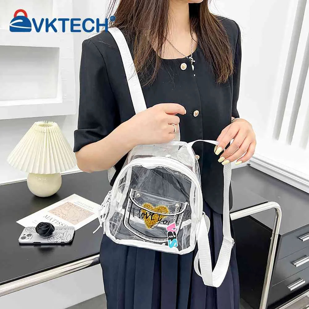 Stay stylish and organized with this transparent PVC backpack featuring a love letter design. Perfect for college students, this bag is waterproof and ideal for casual travel or school use.