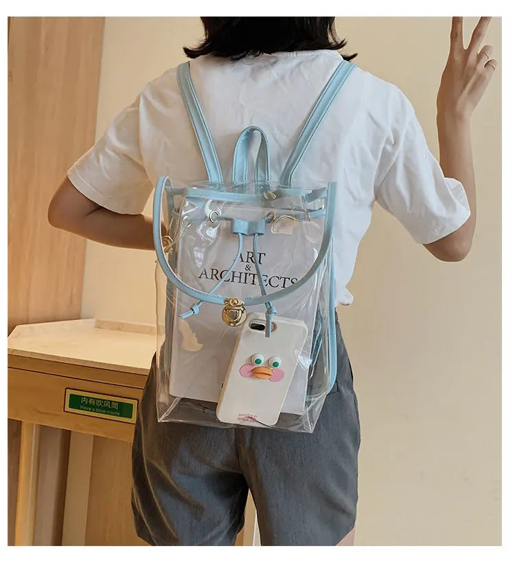 Clear PVC Women Backpack Transparent Travel School Bag for Teenage Girls