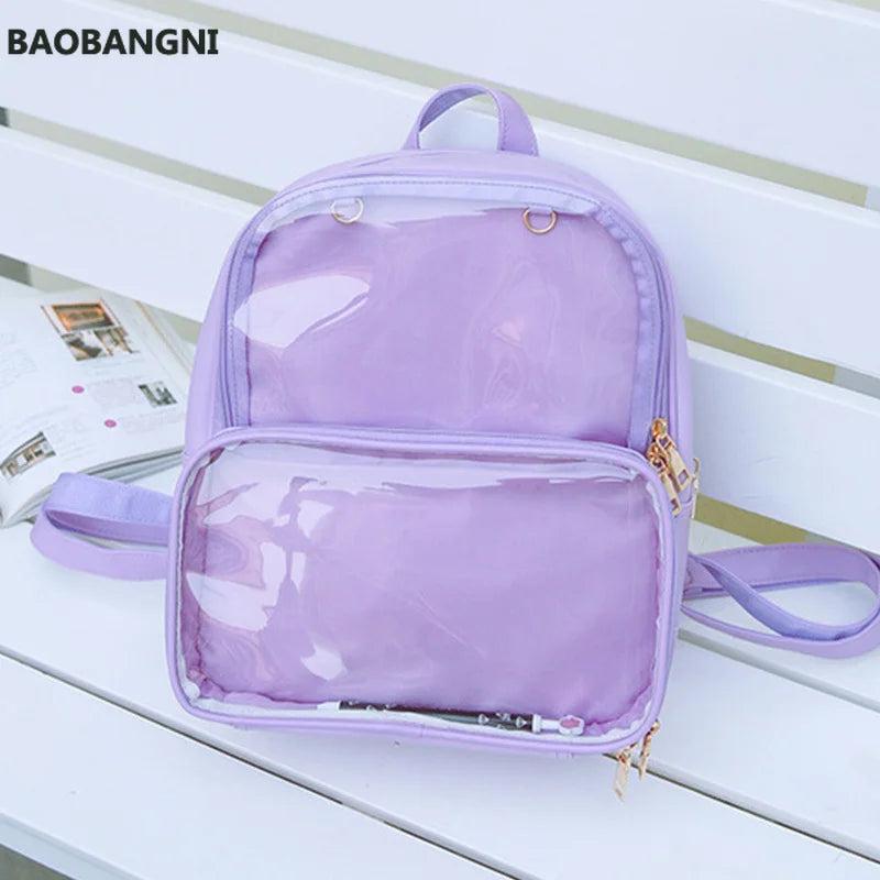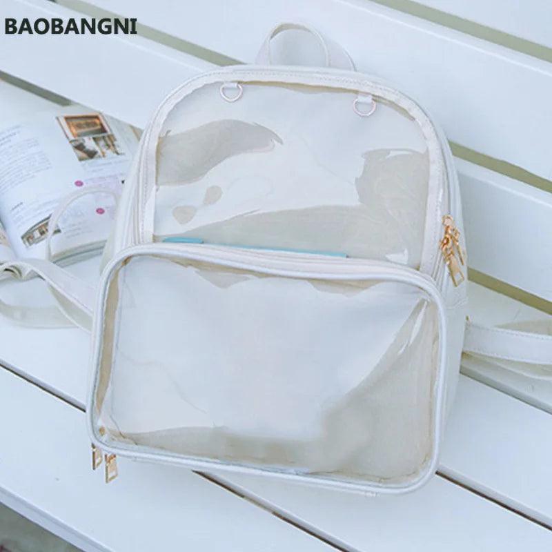 Stay trendy with this versatile see-through backpack for women. Perfect for students and summer outings.