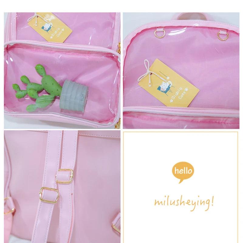 Ideal for teenage girls' school use, this transparent PVC backpack is trendy and durable. It's perfect for carrying books, laptops, and personal items.