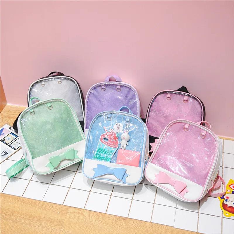 This Japanese-style Itabag backpack is perfect for carrying books and essentials. Transparent design showcases your favorite pins and decorations.