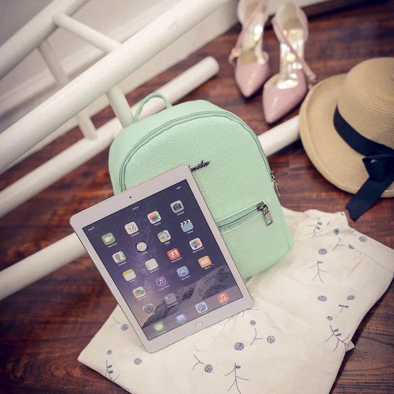 College Wind Mini Shoulder Bag PU Leather Girl Candy Small Backpack Women B