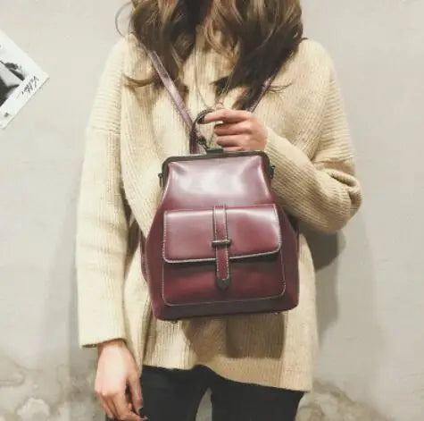 College Wind Retro Women Backpacks PU Leather Shoulder Bags School Travel Rucksa
