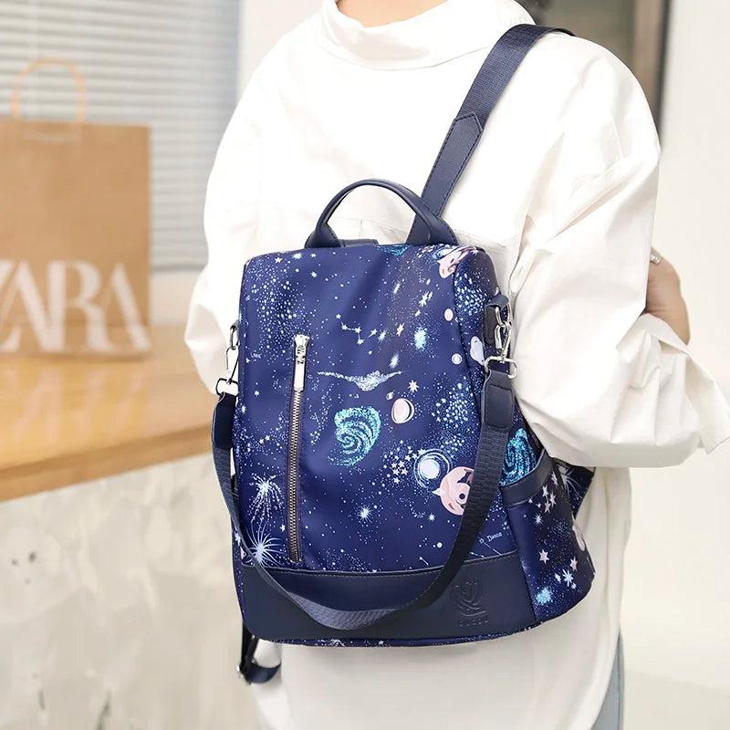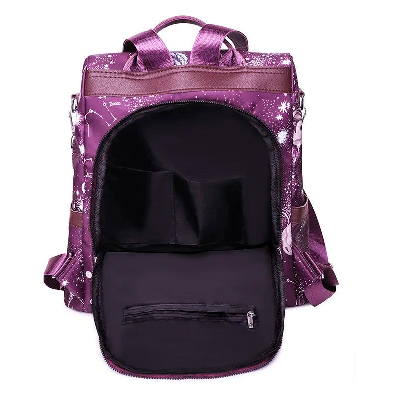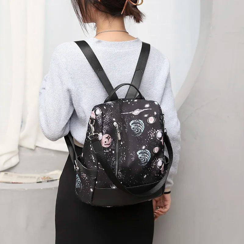 Stay stylish and organized with this waterproof Oxford cloth backpack featuring a vibrant graffiti pattern. Ideal for casual outings and everyday use.