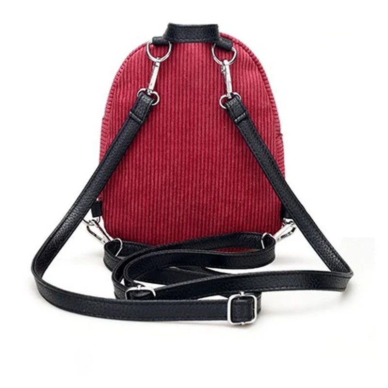 This corduroy mini backpack is perfect for women and girls. It can be used for school, travel, or as a shoulder bag.