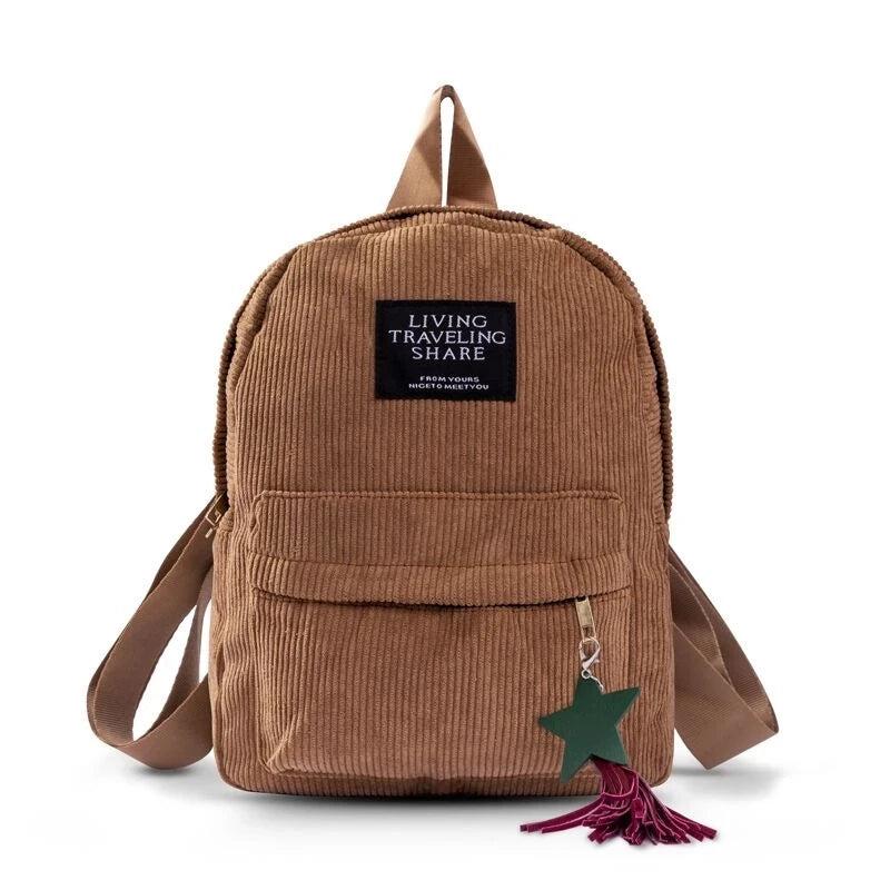 This mini corduroy backpack is made of soft canvas fabric, perfect for teenage girls. It's a small travel bag that's both stylish and functional.