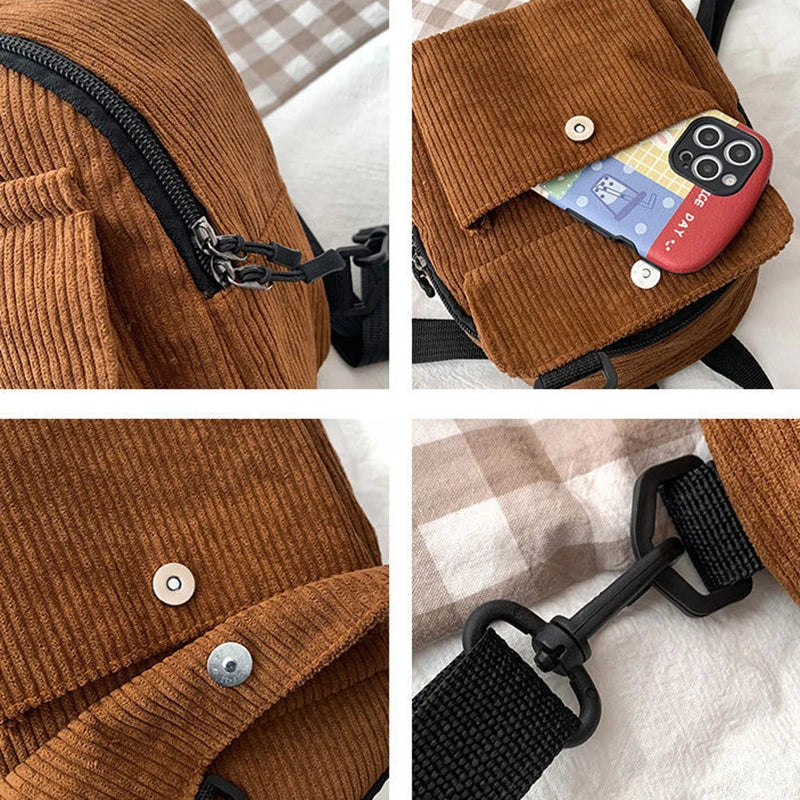 Corduroy Mini Backpack Retro Casual Bag Women School Travel Storage