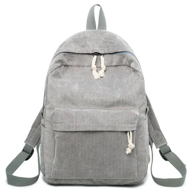 Corduroy School Backpacks For Teenage Girls Striped Rucksack
