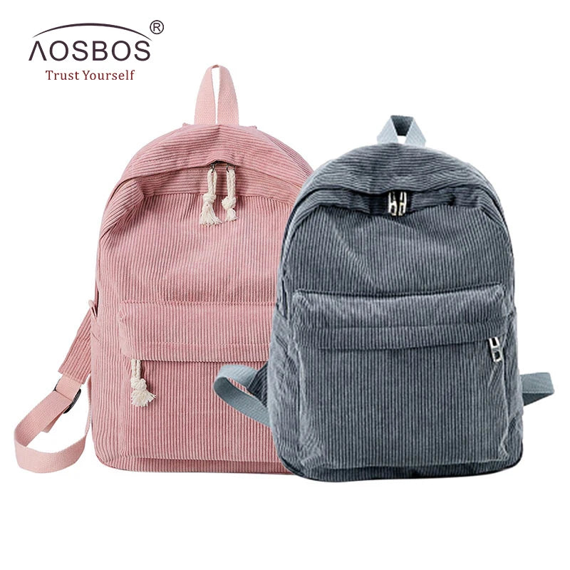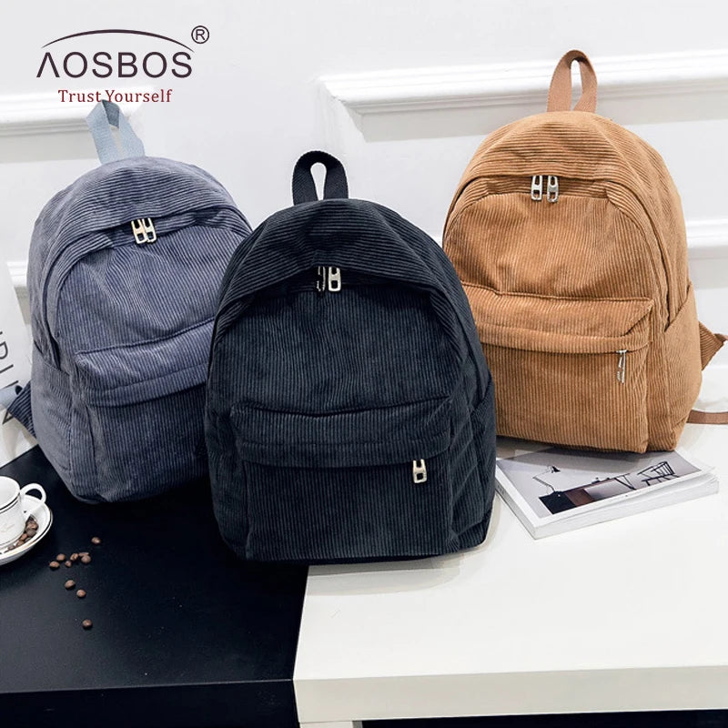 Corduroy School Bag for Girls Teenage Casual Students Laptop Backpack