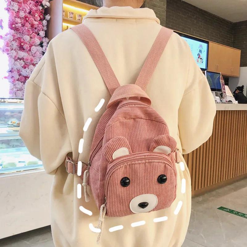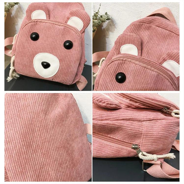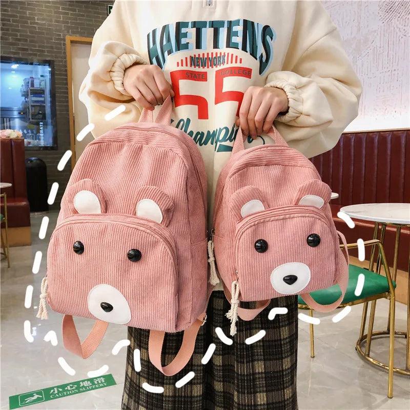 This adorable corduroy backpack is perfect for women and students. It features a cute cartoon design and is great for travel or daily use.