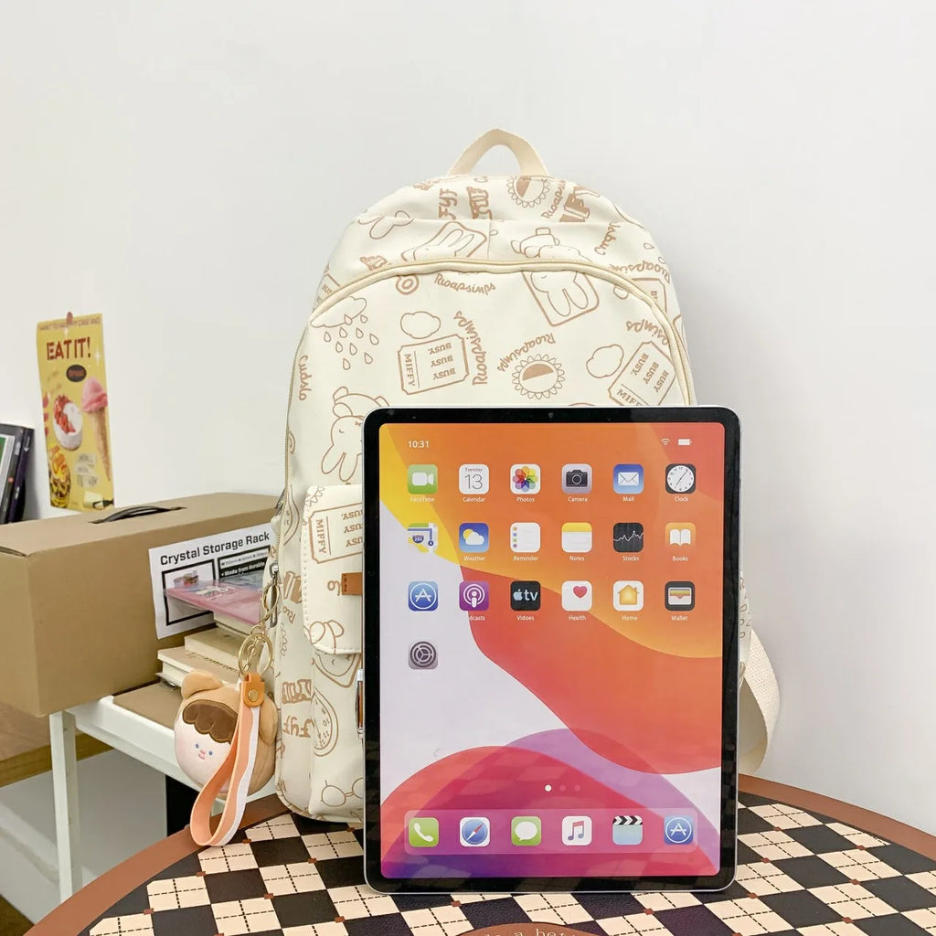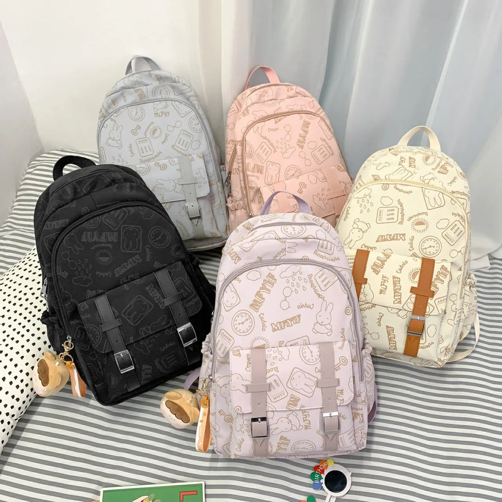 This stylish corduroy backpack is perfect for teenage girls and students. It features a striped design, making it a fashionable and functional choice for school or travel.