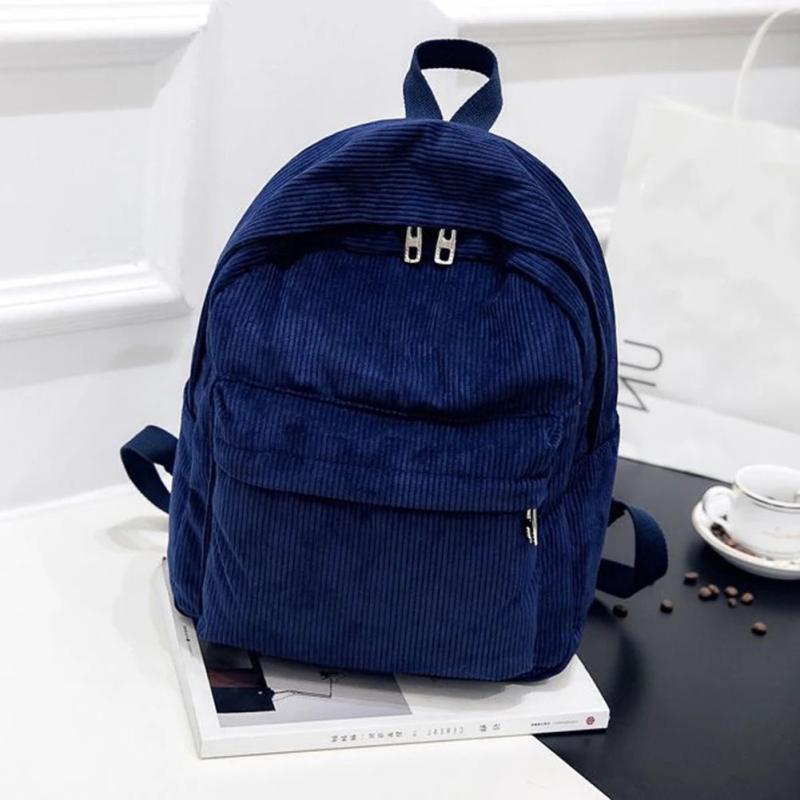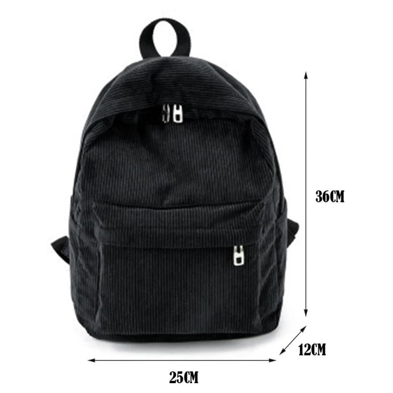 Corduroy Zipper Backpack Large Capacity Ladies Knapsack